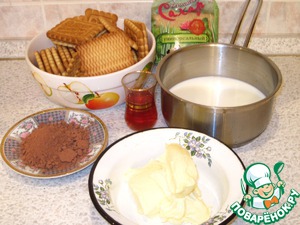 Вскипятить молоко, добавить сахар, размешать до полного растворения. Добавить в молоко остальные продукты: масло, какао, печенье, коньяк. Остудить массу. -