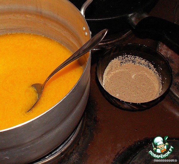 Посыпаем сверху мукой, закрываем кастрюлю крышкой и ставим в теплое место (я - в наполненную горячей водой ванну). Первый подмес подходит где-то час, и пока можно заниматься начинкой.