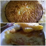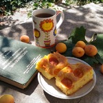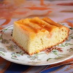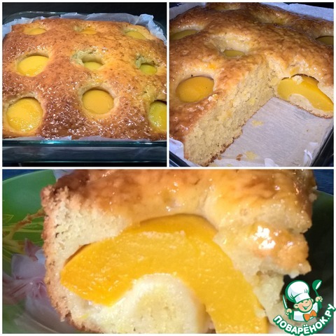 [+4]Пекла 35 минут+10 мин. под фольгой. Сахар, конечно, уменьшила вполовину, часть заменила ванильным, вместо абрикос были консервированные персики. Сиропом от них потом смазала верх пирога. Вся семья ела с удовольствием