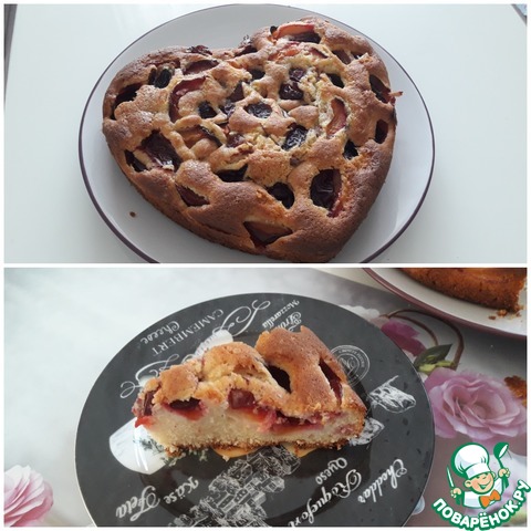 [+4]Сахар уменьшила до 150 грамм, верх не смазывала, а вместо абрикосов свежие сливы.