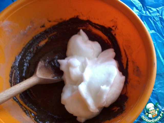 К тесту добавляем 3 ст л взбитых белков и тщательно размешиваем тесто.