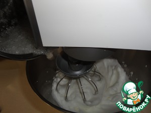 Затем во взбивающиеся белки вливаем наш горячий сироп. Продолжаем взбивать еще минут 5.