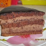 Затем второй корж и 2-ая половина крема. Сверху накрываем 3-м (нижним) коржом.