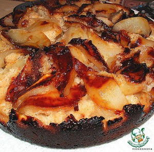 Пирог остужаем в форме (важно!), перекладываем вверх грушами на блюдо.
