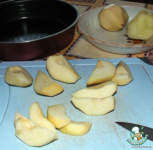 Груши чистим, разрезаем на четвертинки и вынимаем серединки. Нарезаем дольками.