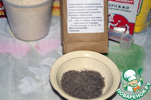 Этого ингредиента нет с списке, поэтому начинаю с него. Это Аграм, специальная добавка к хлебу. Именно он придает нужный вкус ржаному хлебу. Знаю, что нужного вкуса можно добиться с помощью живой закваски, но вот я никак не соберусь её сделать, поэтому Аграм для меня палочка-выручалочка.