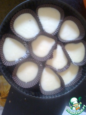 Итак! Перемешиваем аккуратно взбитые белки с основной массой. И вот пришло время подготовить формочки (смазать маслом, можно посыпать коричневым сахаром) и наполнить их, но только до половины!!!