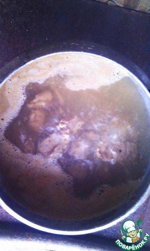 Тем временем мясо варится до готовности, бульон солим по вкусу.