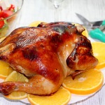Румяная, ароматная, сочная курица с необычной сладкой и острой корочкой нравится всем, кто ее пробовал. Подаю я ее с отварным рисом и фруктами - апельсины, лимоны, грейпфруты, хурма, виноград.
