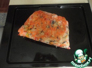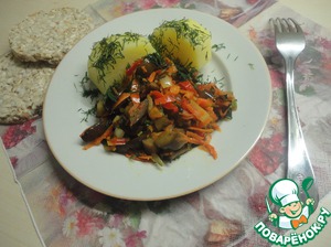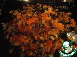 Через 20 мин. перемешиваем и второй раз ещё через 20 мин. Все овощи растаяли. Раскладываем ровным слоем и ещё 20 минуток в духовке. В это время чистим картошечку и в кипящую воду, варим до готовности.