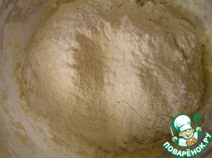 0,5 ч. л. сахара или меда, 120 г муки, перемешать,