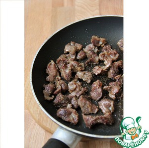 А готовиться он очень просто, хотя на первый этап потребуется немного времени. Для начала надо приготовить желудочки. Их очистить, вымыть, посолить и поперчить и обжарить на гусином жире (гусиный жир можно заменить сливочным маслом)до золотистой корочки, затем подлить немного воды и на маленьком огне и тушить их до готовности. Точное кол-во воды не могу указать, т. к. подливаю по мере испарения. У меня этот процесс занимает минут 50-1час. Скажем что это мой, диетический вариант)) В Перигоре желудочки полностью заливают гусиным жиром и в течении 2 часов тушат. Получаются вяленые желудочки. Вкусные, но в то же время жирные.