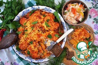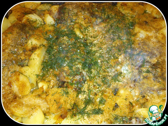 И запеките в духовке (в оригинале рецепта не было указано - сколько и температуру, поэтому я ориентировалась только на свой опыт, запекала в предварительно разогретой до 200-220 градусов духовке минут 40 - до подрумянивания), посыпать зеленью.