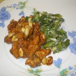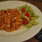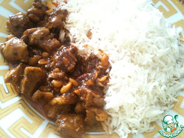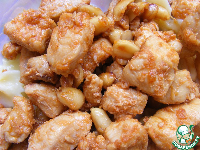 Что-то я все по десертам, да по десертам... А сахар-то не только в десертах используют! Но и в таких блюдах как это, например: курочка в кисло-сладком соусе с арахисом.