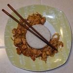 Казалось, только что Вы ели все вышеперечисленное в китайской забегаловке, а тут же на углу какие-то торговцы едят что-то странное, похожее на огромные манты с травой, вылавливая их из мутного бульона палочками. Тут и там продают и покупают что-то вроде рисовой начинки с "чем-то" в небольших конвертах из плотных зеленых листьев неизвестного мне растения... Вобщем, совсем не то, чем кормят нас! Т. е. либо они просто подстраивают блюда в общепитах под европейский вкус, либо просто совершенно разделяют свою кухню - для своих и для туристов. Ну, это мои личные наблюдения и заключения... И еще мне вспомнился случай: ходим мы по их рынку в городе Суйфеньхе, мне лет 15. Китаянка жует что-то вроде зефирок. Поймала мой заинтересованный взгляд и протягивает мне одну из своих "конфет". Пробую. По ощущениям - сладкая резина. Она понимает, что я не в восторге от угощения, надувает щеки и отворачивается со словами (а они почти все в приграничных городах говорят по-русски): "А мне нлавица!"... Мне даже стыдно стало. Вобщем, мне все-таки по душе та кухня, которую они нам предлагают, вроде этой курицы, а вот то, что сами едят - я как-то не горю желанием перепробовать