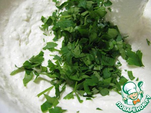 4. Чтобы приготовить пряный творог, в него нужно добавлять постепенно сливки и перетирать блендером до кремового состояния. Если масса густая - добавить еще сливок. Добавить измельченный чеснок, зелень петрушки, посолить и поперчить по вкусу.