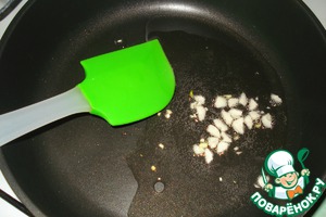 • На растительном масле слегка обжариваем чеснок, как только пойдет чесночный запах выбрасываем его.
