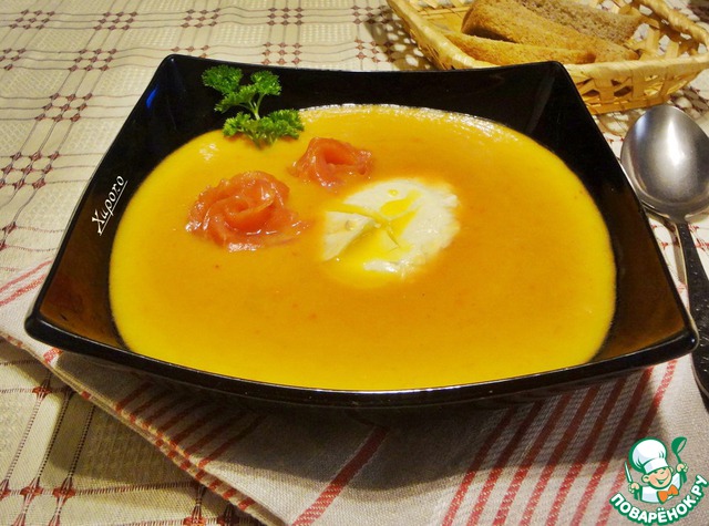 Рецепт «Тыквенный крем-суп с яйцом-пашот и копчёным лососем»: