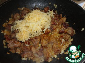 Кладем карри, приправу и яблоко. Перемешиваем.
