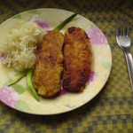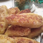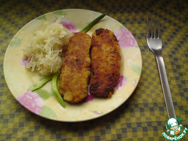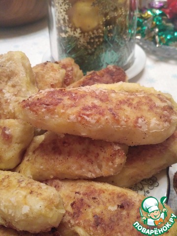 4. Из теплого теста сформовать колбаски толщиной в большой мужской палец и обвалять в крахмале. Обжарить на растопленном сливочном масле со всех сторон.