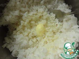 Остальное масло растопить и смешать с рисом. Хорошо перемешать. -