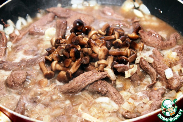 Рецепт «Оленина, тушенная в сметане с опятами»:
