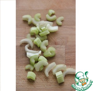 Сельдерей нарезать на маленькие кусочки.