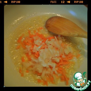 Морковь и лук обжарить на сливочном масле, посолить слегка и поперчить.