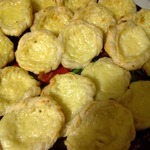 Крендельки с донышком из рассыпчатой крошки, наполненные нежным ванильным кремом.