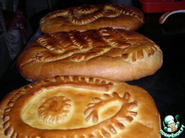 Тесто разделить на 2 части и сформовать 2 пирога.