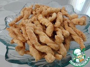 А из остатков теста я делаю простые жгутики, посыпаю их коричневым сахаром и выпекаю.