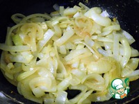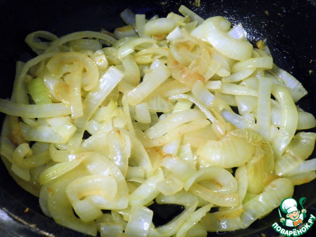 Лук почистить, крупно порезать и обжарить на сливочном масле (можно добавить немного подсолнечного для удобства жарки) до золотистого цвета. |