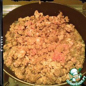 Обжарить фарш. И сварить макароны.