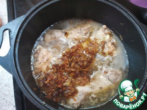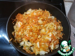 Режим лук мелкими кубиками, морковку натираем на крупной терке и обжариваем, солим в середине готовности (когда объем уменьшится в два раза, что-бы лук и морковь сок отдали)