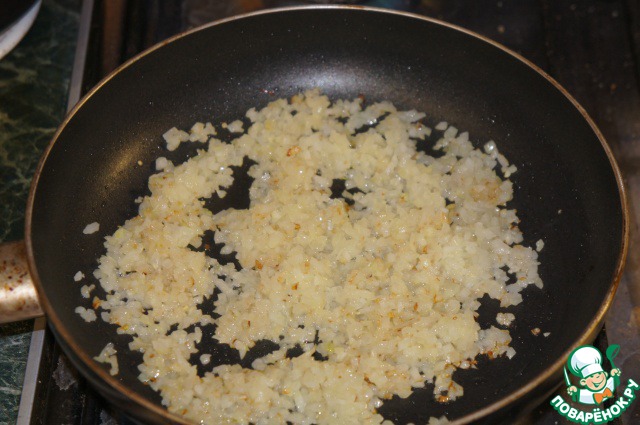 В сковороде разогреть растительное масло и обжарить лук до легкой золотистости.