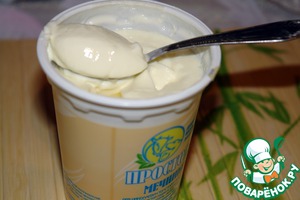 Начну с простокваши. Я беру Мечниковскую, так как она самая густая. На фото я постаралась это показать. Наверно, можно простоквашу заменить сметаной, но я так не делала. Если берете другую простоквашу, то её нужно выложить на марлю, в дуршлаг и оставить часа на 3, чтобы стекла лишняя сыворотка.