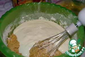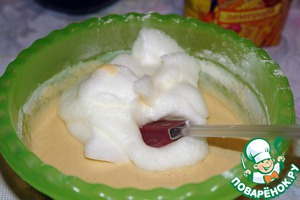 Добавить белки к основной массе в два приема, аккуратно перемешать.