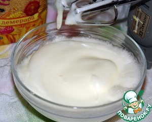Белки взбить в крепкую пену с добавление щепотки соли.