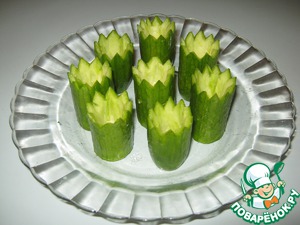 Так как у меня огурцов было мало, а салата получилось много, то блюдо можно украсить так.