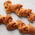 Сворачиваем тесто в жгут и укладываем на противень (противень я застелила пергаментом и смазала маслом).