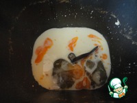 В моей хлебопечи по инструкции сначала выкладываются жидкие, затем твердые ингредиенты. В чашу хлебопечи вливаем молоко, вбиваем яйца. |