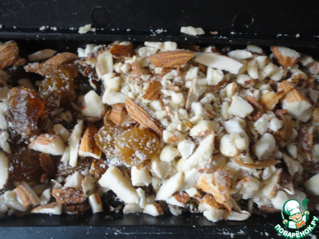 Для тех, у кого нет такого замечательного диспенсера, необходимо добавить орехи и изюм в тот момент, когда хлебопечь подаст соответвующий сигнал. Почти во всех хлебопечках есть эта функция. Обычно это через минут 20 после начала замеса. Тут вот как раз момент, когда сработал диспенсер. -