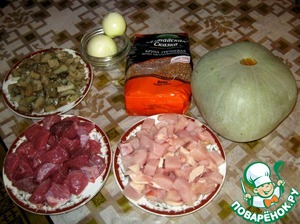 Ингредиенты для «Мясо с грибами в тыквенном горшочке»: