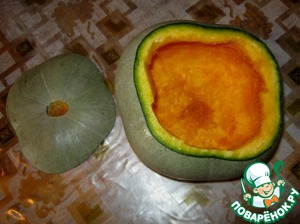 • Тыкву помыть, срезать верхушку тыквы и вычистить семена.
