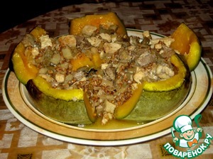 Рецепт «Мясо с грибами в тыквенном горшочке»: