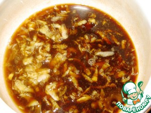 Смешать апельсиновый сок с имбирем, чесноком, горчицей и соевым соусом.