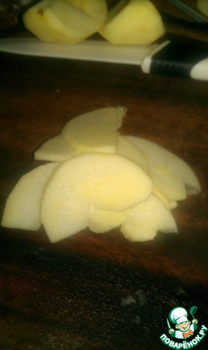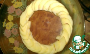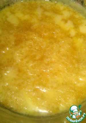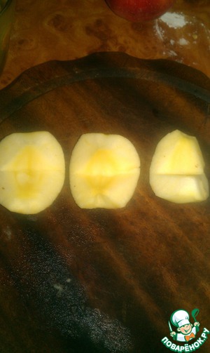 Сбрызнуть Кальвадосом яблоки. Я делала дочке, поэтому столовую ложку яблочного сока смешала с чайной ложкой меда и сбрызнула этим сиропом яблоки.