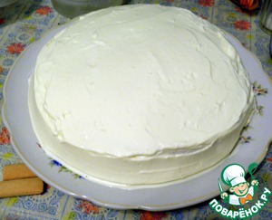 Придаем нашему торту блеска - обмазываем бока кремом №2 и выравниваем верх. Уже виден прогресс.. :)