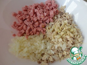 - Ветчина (порезанная маленькими кусочками) — 200 г