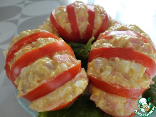 Ингредиенты для «Помидоры с салатом из курицы»:
